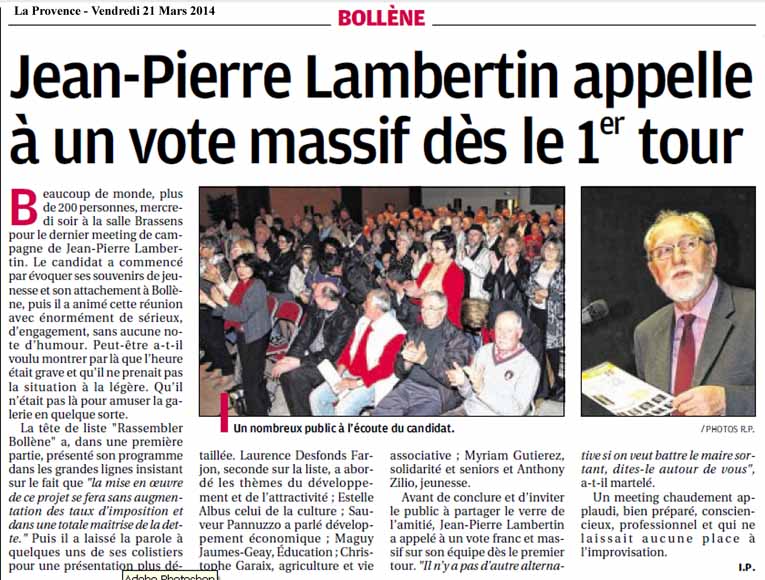 a le culot d’annoncer dans Bollène-Magazine, son journal de
