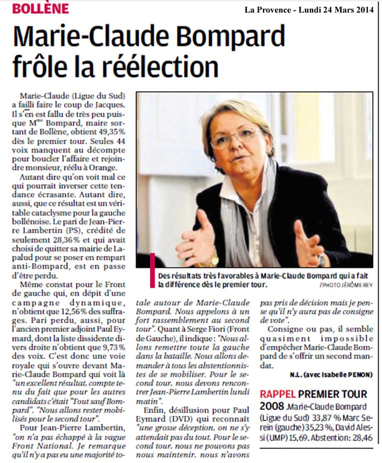 résultats Marie-Claude Bompard frôle la réélection |