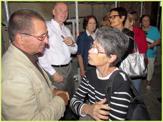 Il est entouré d’entrepreneurs triés sur le volet : Lithos France, Vitraux Saint-Georges, taille de pierre Mariani, etc. Tous épiloguent et répondent aux questions, lors du tour du saint lieu, dont trois chapelles internes sont passées au crible.