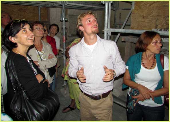 De précédentes visites ont déjà rendu compte de l’avancement des travaux. Aujourd’hui, nous emboîtons le pas aux Bollénois, invités à une visite commentée par Didier Repelin, maître d’œuvre et architecte en chef des Monuments historiques.