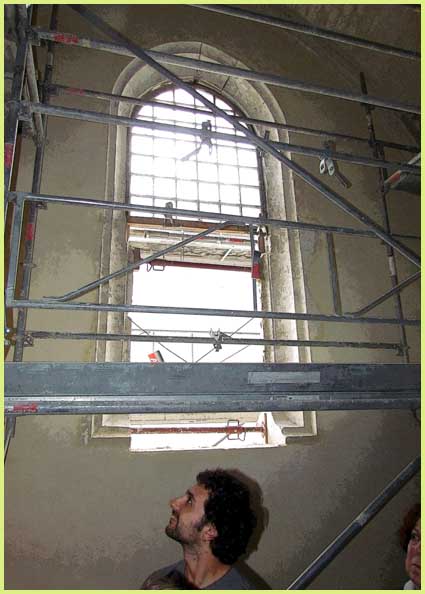 Des vitraux filtreront le jour à travers cette ouverture (au centre) qui était à demi obstruée.