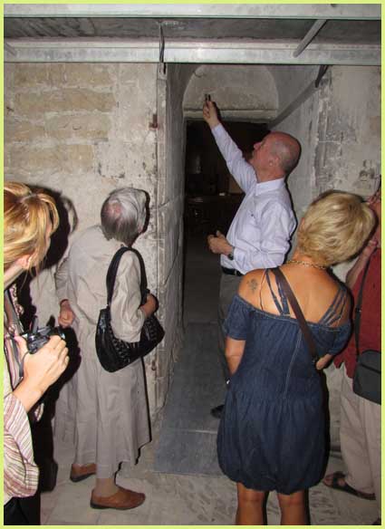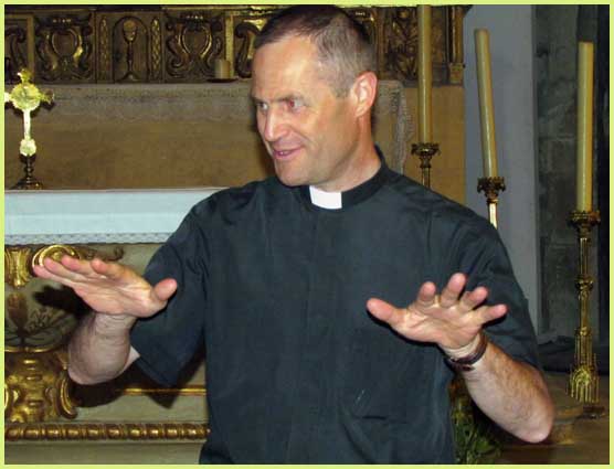 Cette grand-messe est en fait une conférence sur l’historique du saint lieu. Le courant passe... Tandis que des anges veillent...