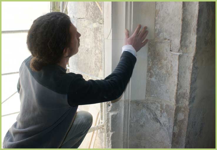 Exemple : le fragment d’un remplage gothique, sorte d’armature destinée à border un vitrail, est posé sur un établi. Fabien, artisan bollénois et chef de chantier, explique : « Les géologues ont dégagé 600 morceaux dont 300 seront restitués. Non pas pour croupir dans un musée, mais pour retrouver leur place initiale. » Cette reconstitution englobe ledit remplage, les miettes identifiables qui l’entourent et la création de chaînons manquants.