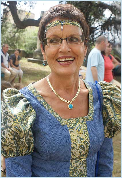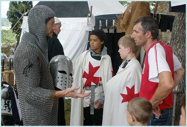Une conteuse (à gauche) tient le haut du pavé médiéval. |