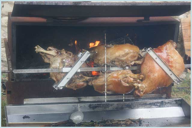 Après délibération, le jury va désigner les porteurs des plus beaux costumes... tandis que cuit le jambon de cochon. |