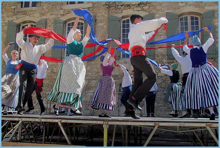 Les absents ont eu tort et ont manqué « Les Pastourelles de Campan », une entité traditionnelle apparue en 1918 dans le haut pays de Bigorre, qui est venue mesurer ses talents avec ceux du groupe local Li Cardelina, qui défend les valeurs du Haut Comtat depuis 1959. La comparaison était intéressante, au gré des chants et des danses, de rhèmes identiques différemment traités : vie paysanne, moissons, noces, veillées… Quant aux lanceurs de drapeaux, ils restent une spécificité bollénoise.