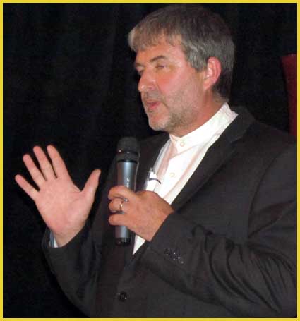 Claude Raoux, adjoint au maire (à gauche) et Yvon Durnez, violoniste (à droite) font l'éloge du programme