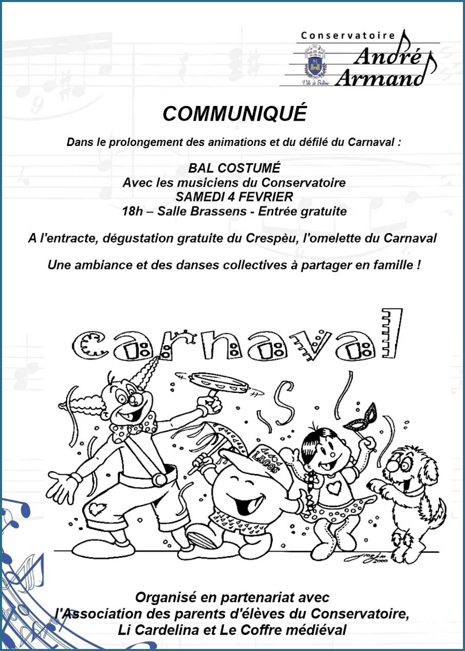 Hors, cette fois-ci, de la simple bulle scolaire, la classe de musique traditionnelle et ses musiciens débridés vont animer le bal costumé de carnaval à la salle Brassens. A suivre… J. P.