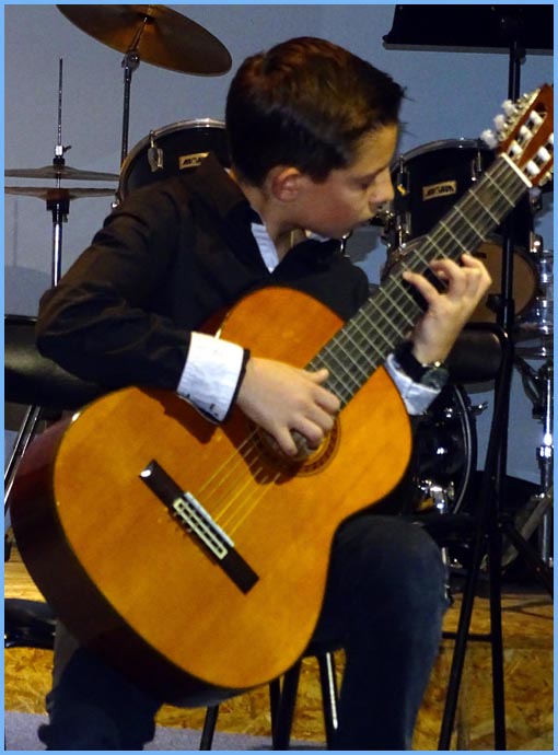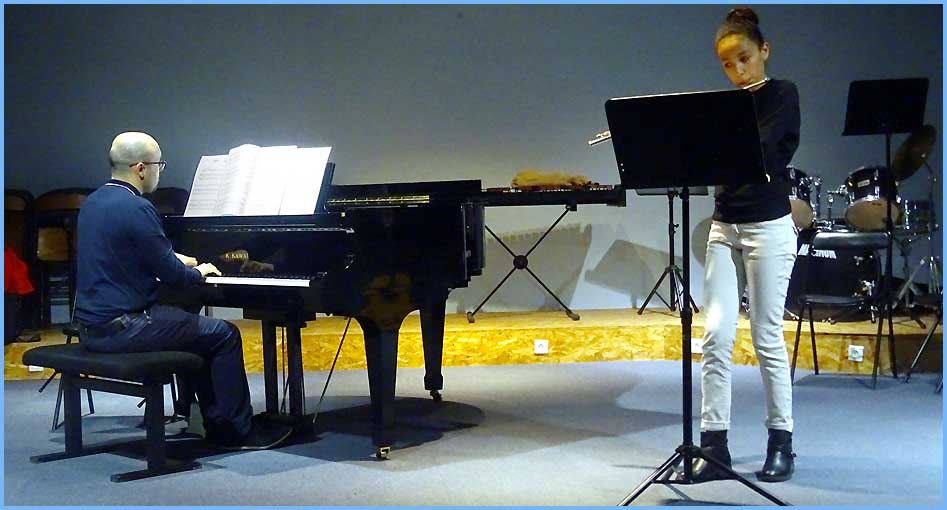 Consistante et variée, cette audition a déplacé pas mal de monde, tant du côté exécutants que du côté public. Rappelons que le conservatoire brasse un effectif de 300 élèves de tous âges et qu’il les auditionne publiquement à raison d’environ deux concerts par mois à l’auditorium.Voilà qui permet aux parents de mesurer l’étendue des exercices qui, selon le niveau d’instruction, en appelle à l’indulgence de l’auditoire. Cinq classes ont ici participé au concert, celles de flûte traversière, guitare, cornemuse, piano et alto. La plupart des partitions sont jouées par un élève, éventuellement accompagné au piano par Patrice Pascal, professeur. Les débutants s’en tirent consciencieusement avec quelques courts extraits hésitants. Les plus chevronnés s’aventurent chez Schubert ou Haendel et parviennent à parer leur technique de quelque émotion. Le crescendo est toujours intéressant.