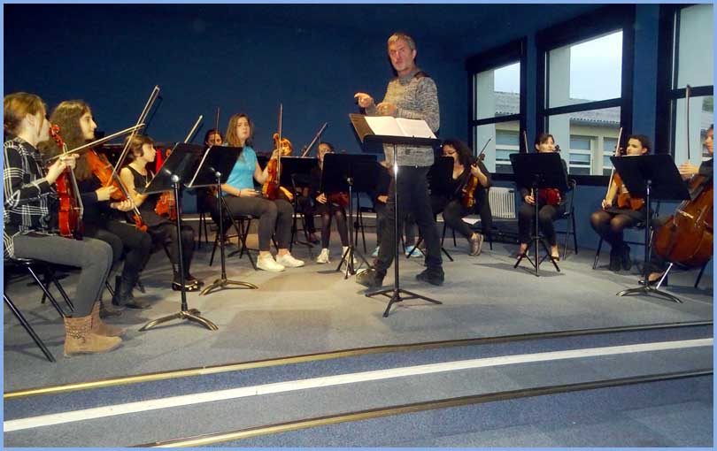 Classe d’initiation à l’orchestre à cordes dirigée par Yvon Durnez.