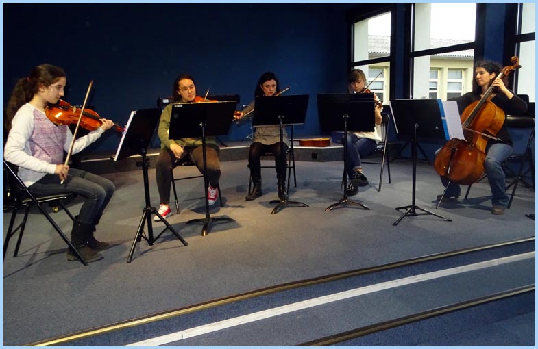 Un quintette issu des classes de violon et violoncelle joue Mozart.