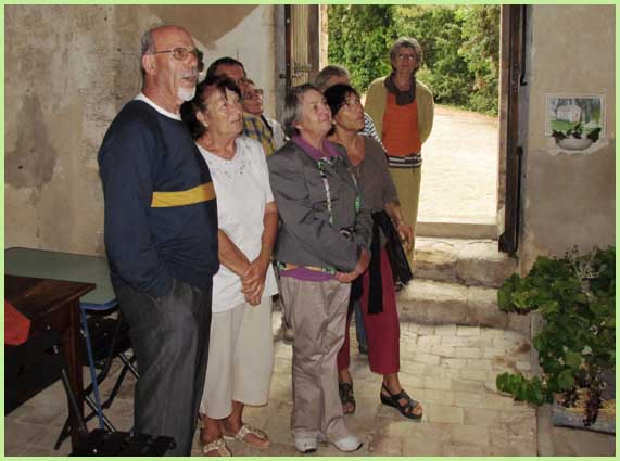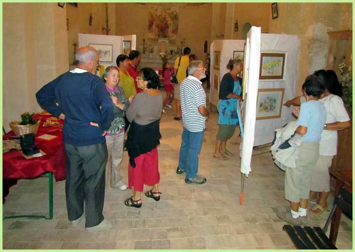 Tout sourire, à la porte du saint lieu, un comité d’accueil propose une visite commentée. Ce sont les artistes eux-mêmes, peintres amateurs locaux, qui présentent leurs œuvres. Des confitures fait maison et autres gourmandises du terroir font occasionnellement partie des découvertes. Bref, c’est un condensé de douceur, tant visuelle que gustative, qui, en toute simplicité, ravit tout nouvel arrivant. Foi de touristes, échoués là par hasard !