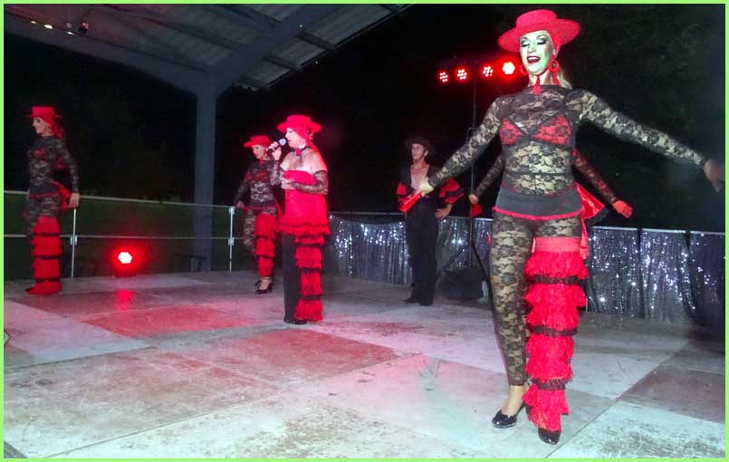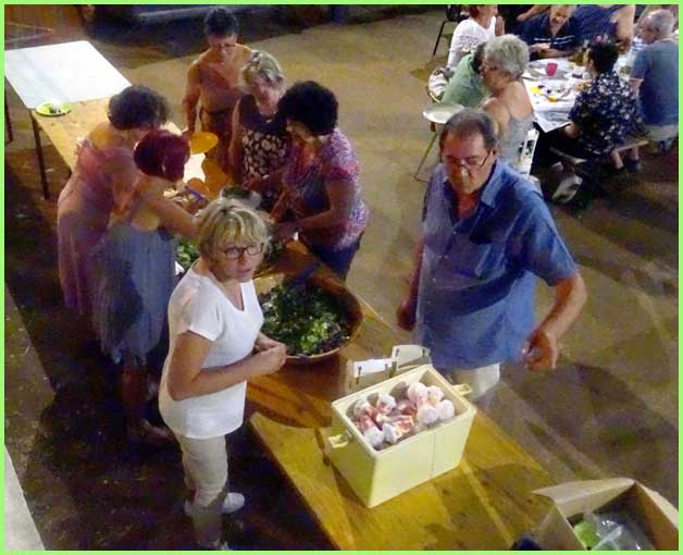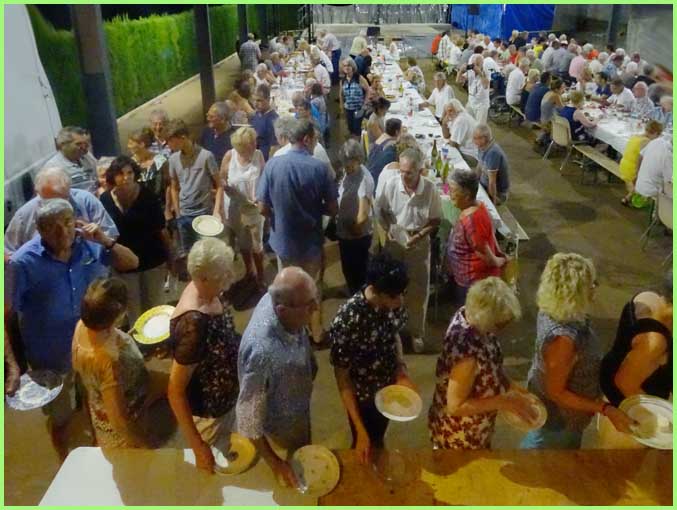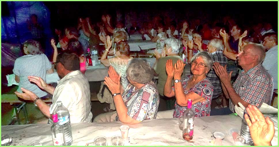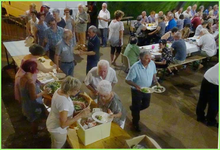 Inauguré le jour même à midi, l’espace Gilbert Mégier abritait ensuite la traditionnelle fête du hameau de Derboux qui occupe chaque premier week-end du mois d’août. La grande halle accueillait donc déjà confortablement 180 convives, régalés par l’incontournable paella de la Souco, suivie d’un spectacle de music-hall du style Paris by night avec trois chanteurs et cinq danseurs, pour un tour du monde musical, haut en rythmes et en couleurs. Les artistes ne souhaitent pas toujours que se superposent le repas et le spectacle. Voilà qui étire les festivités bien au-delà de minuit. C’est un peu tard pour un public familial. Mais le lendemain est un dimanche et la fête continue. A suivre… (voir page)