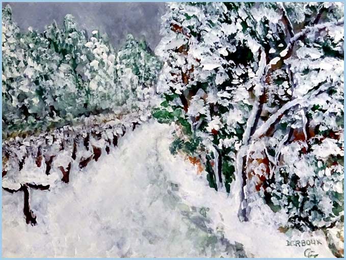 Comparable à nulle autre, cette exposition éphémère au cœur du Massif d’Uchaux ne dure qu’un dimanche. Elle occupe la chapelle Saint-Pierre (XIIe siècle) du hameau de Derboux, à l’occasion de la fête organisée par la Souco. Avant de participer à un loto sous la halle récemment inaugurée, au terme d’une promenade bucolique à travers le vignoble, les visiteurs pouvaient donc se rendre au saint lieu, où étaient exposées des œuvres dues aux artistes locaux suivants, membres de l’association « Nuances » : Thérèse Herbron, Robert Lloret, Claudette Philippeau, Mireille Rocheblave et Clarisse. Un hommage posthume était aussi rendu à Simone Félix, après la découverte d’un tableau datant de 1942, représentant un loulou de Poméranie.   J. P.
