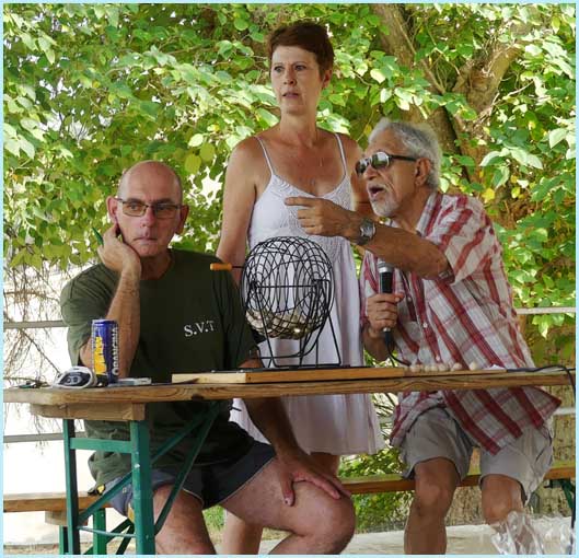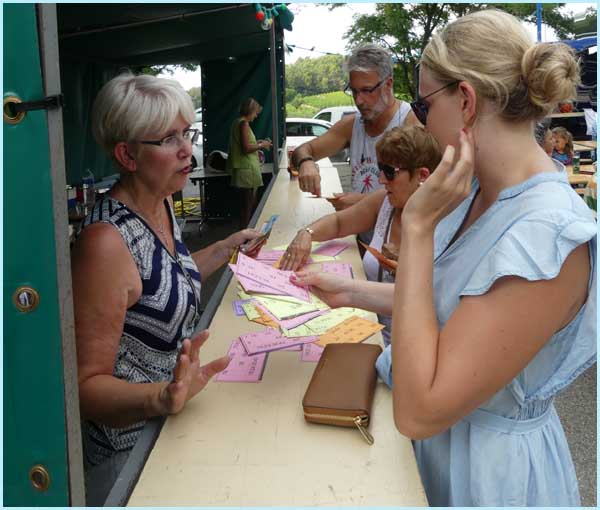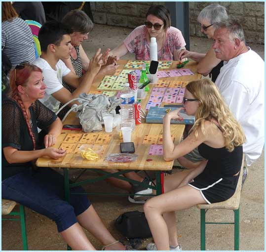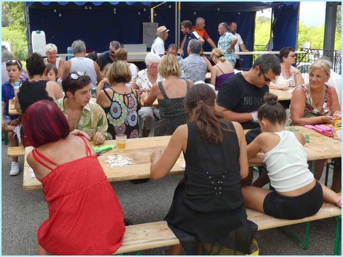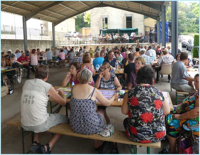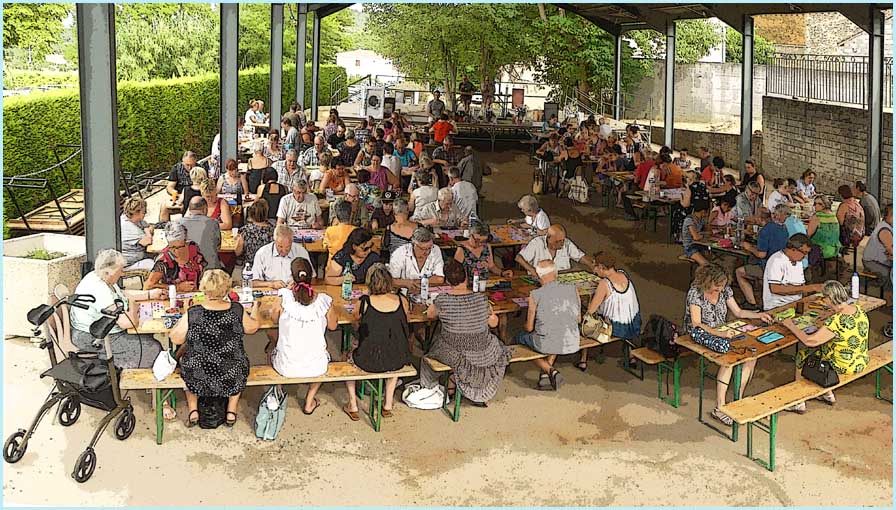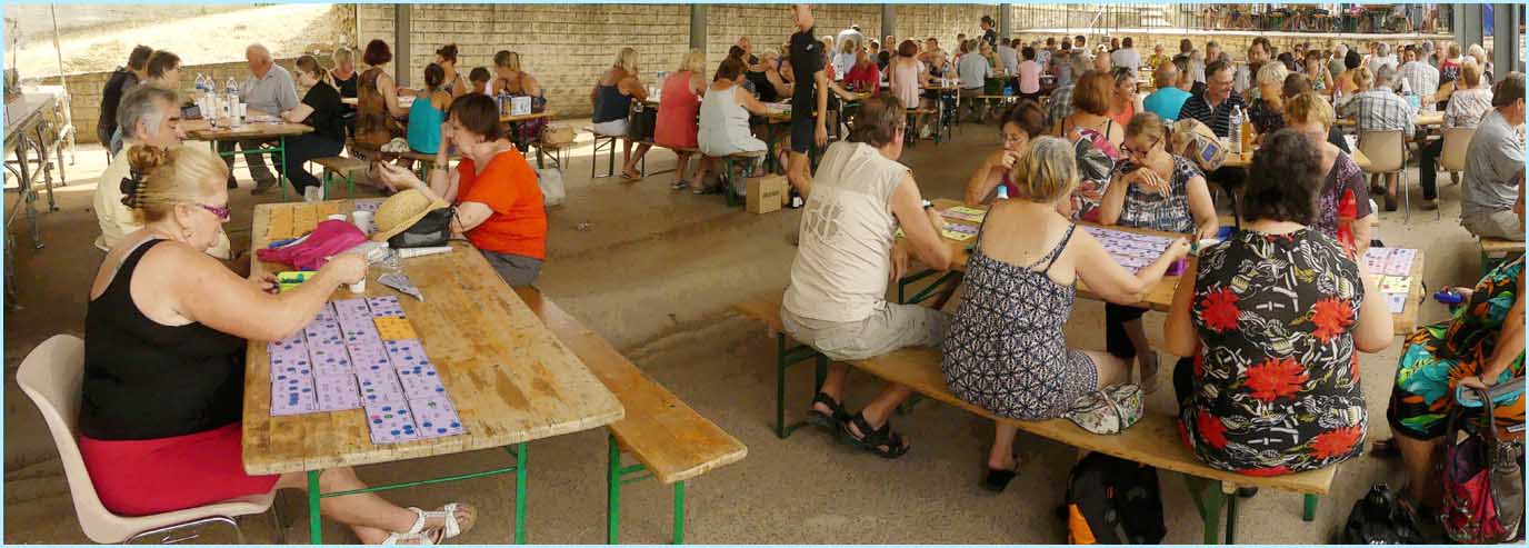 se sont réfugiés à l’ombre, sous la halle, pour participer au loto