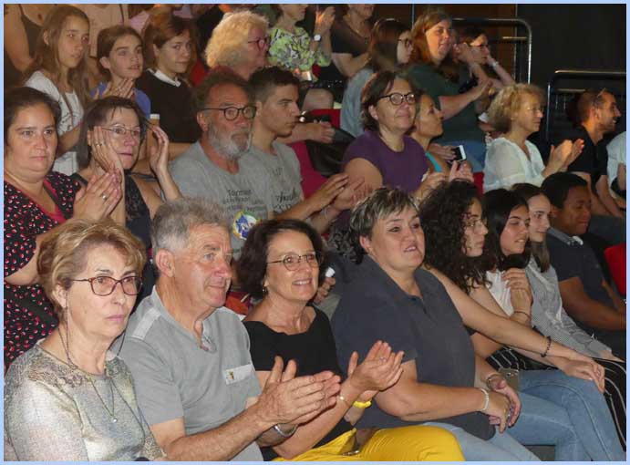 Le spectacle résulte d’une douzaine d’interventions pour chaque groupe d’élèves, initiés à la pratique théâtrale, tendant vers une fresque futuriste. Dans les faits, deux représentations de presque 2 heures ont successivement fait le plein. Pas de scène ostentatoire ni de rideau, mais un dispositif de plain-pied pour comédiens et public, avec deux podiums perpendiculaires. Soit une sorte de tribunal jaugeant les protagonistes : enfants, éducateurs, familles, etc. Le tout aspirant à un monde meilleur, préfiguré par une idylle entre Piter et Léna.               J. P.