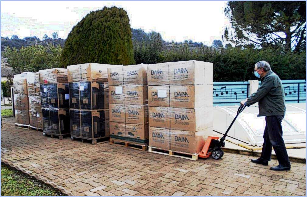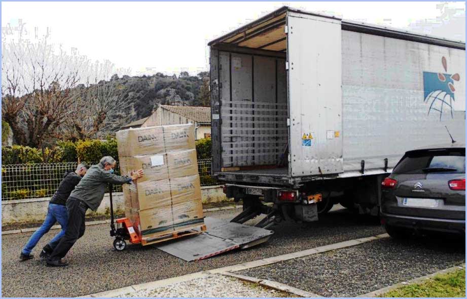 premier chargement de 6 palettes (1,600 tonne) de bouchons de