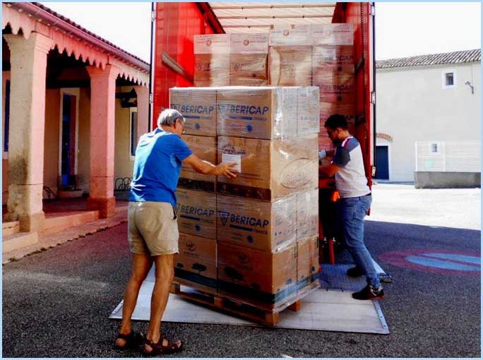 La collecte est bonne malgré la crise sanitaire. D’autant que le stockage occupe désormais un nouveau local mis à disposition par la municipalité (ancienne caserne des pompiers). Depuis le début de l’année, 3, 515 tonnes de bouchons ont été expédiées. S’y ajoutent 2 tonnes (7 palettes), enlevées récemment par les transports Laulan et Descos (photos) à destination du liégeur AMORIM à Eysines près de Bordeaux, qui prend à sa charge les frais de transport et rachète les bouchons à 330 € la tonne.