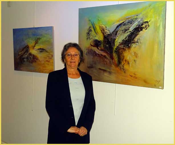 • Christiane Gori-Vigli. Très prolixe, elle essaie tous les genres : scènes de rue, marins en goguette, enfant musicien. New York, composition abstraite. S’y ajoutent des sculptures dont «Tout en rondeur», une ravissante composition raku.