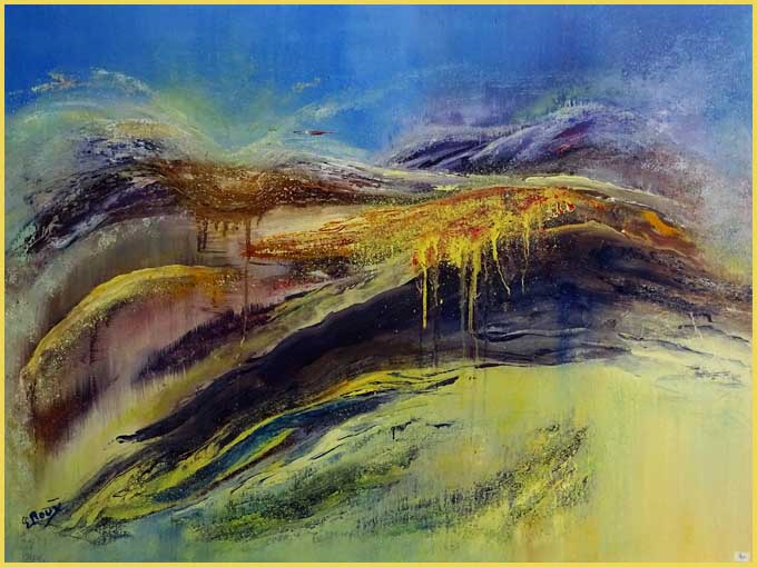 • Edith Roux. Un jour, elle nous a confié : « Je n’ai jamais osé pousser la porte des Beaux-arts, ma famille estimant que la peinture n’est pas un métier. » Sa carrière de comptable ne la comblant guère, elle a intégré le cours de Flavio Parenti, puis s’affirme aujourd’hui seule dans son atelier. Au seuil de l’abstrait, la nature y perce un mystère insoupçonné.