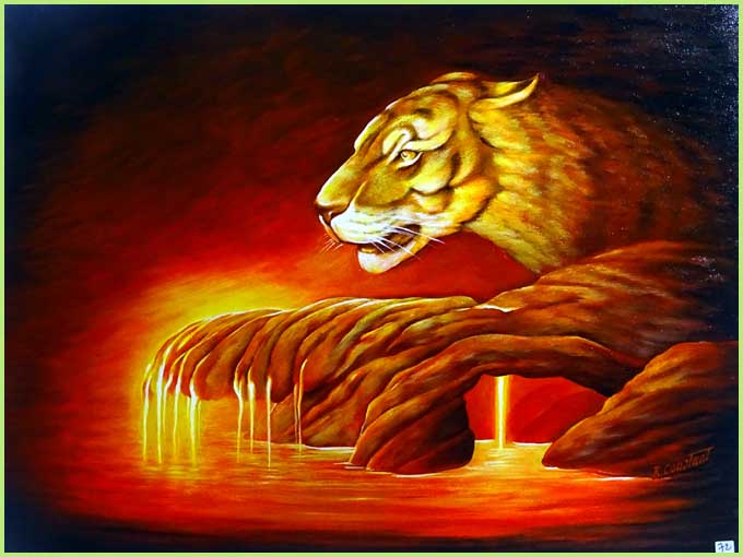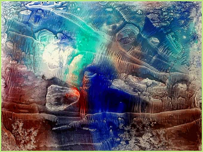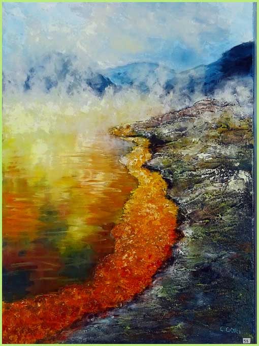 Nadette Tournier. Nous découvrons à partir d’ici les invités qui exposent chaque année. Voici donc les fameuses « huilerelles » de Nadette Tournier : des huiles translucides comme des aquarelles. Imprégnée par le Palais idéal du facteur Cheval, l’artiste dématérialise la matière et en fait d’insondables édens… appréciés jusqu’à Pékin (Médaille d’Or) !