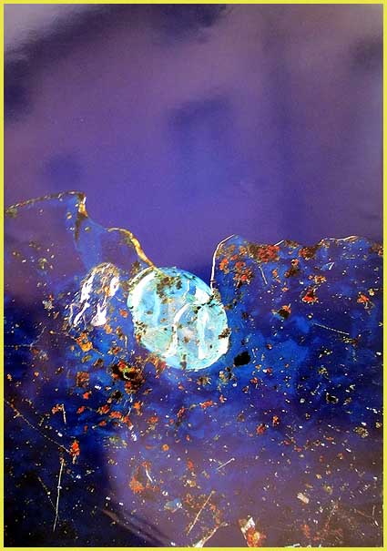 En soi, ces photos constituent d’étonnants éléments décoratifs. Or elles ne sont que la trace de compositions mixtes fugitives, d’abord emprisonnées dans la glace, puis photographiées avant de fondre inexorablement au soleil. L’artiste nous confie : « Je suis passionné par le froid, les Pôles Nord et Sud. J’ai une triple formation : photographique, colorimétrique et éclairagiste. Cette exposition est la combinaison des trois. »