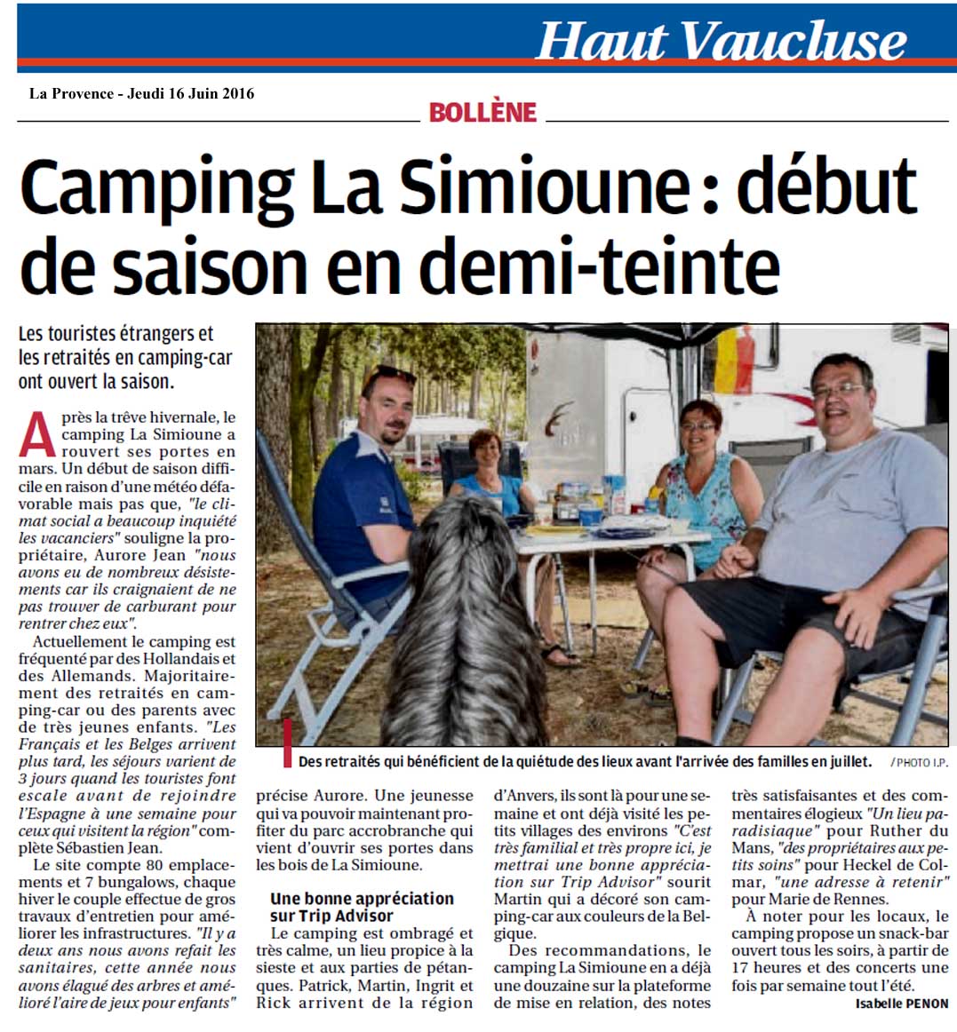 En juin dernier, après la trêve hivernale, Jean Sébastien, propriétaire et gérant du camping La Simioune, nous confiait : « Ce début de saison est plutôt difficile en raison d’une météo défavorable et de mouvements sociaux inquiétants provoquant un risque de manque de carburant et donc des désistements. » En cette fin juillet, le ton a radicalement changé : « Nos 80 emplacements font actuellement le plein ! »