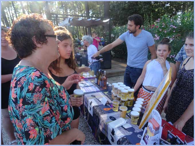 Mieux encore, le soutien du Syndicat d’initiative de Bollène se traduit chaque été par la poursuite de sa tournée de bienvenue dans les campings, avec ses dépliants sur les attraits touristiques de Bollène et sa région, et une dégustation de vins et de produits du terroir : Côtes-du-Rhône de la Bastide Jourdan, spécialités des Mets de Provence, miel Nouguier et fromagerie Verdoulet (Mondragon). Prochain apéro avec dégustation : mercredi 10 août à 18h30.           J. P.