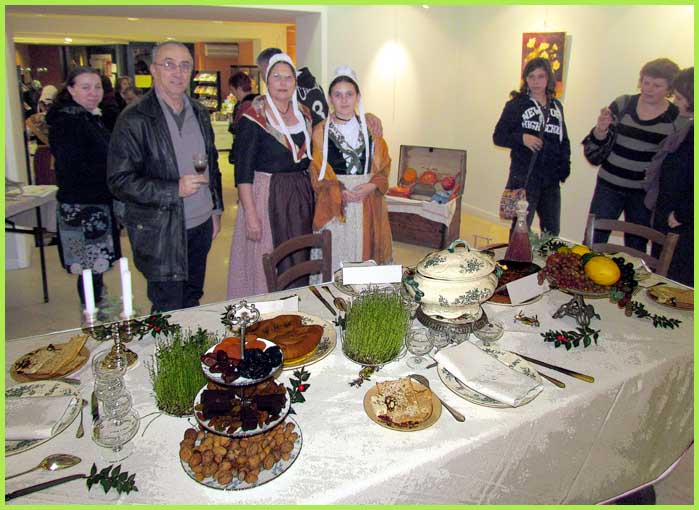Calés sur l’actualité, l’Office de tourisme et la Ville ont choisi d’exposer « La table des 13 desserts de Noël et les ustensiles de cuisine ». Comme les précédentes, cette 5ème édition est un ravissement dont les Bollénois ne se lassent pas. Le soin qu’y apportent « Li Cardelina », groupe des arts et traditions populaires du Haut Comtat, et « Parlaren à Bouléno », association garante des valeurs d Provence, force l’admiration.
