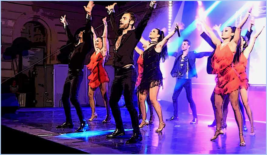 Une heure avant le spectacle, un orage passager est venu arroser le podium. D’où l’affolement des festivaliers se croyant privés de leur divertissement estival, généreusement offert par la Ville. Mais le ciel bollénois s’est éclairci, là même où, à la nuit tombante, les Polymusicales 2018 ont rugi pour la cinquième fois, ce mercredi soir, devant un parterre d’aficionados en quête d’émotions. Par ailleurs plombé par la canicule, le public restait malléable, devant une sorte de tout en un explosif et coloré, censé vous ravigoter un festival d’été. Car l’intendance annonçait : « Le meilleur des comédies musicales ». L’extrême laconisme de l’affiche ne nous dit rien sur les artistes, sinon qu’ils nous embarquent sur les traces de West Side Story ou Sing in the rain. C’est Broadway qui débarque à Bollène. « Pas la vraie », précise honnêtement le dépliant. Tant pis ! A cheval donné, on ne regarde pas la bride.