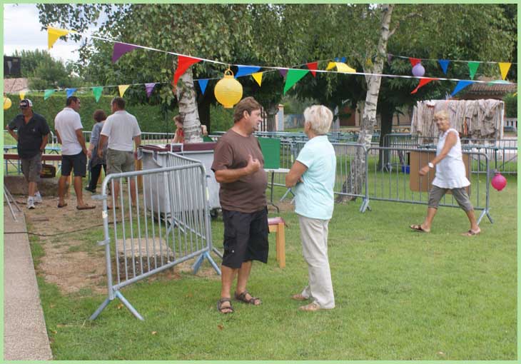 ![]() ![]() ![]() Les coupes seront gagnées au concours de boules... qui se fiche de la pluie ! Difficile d’attiser les braises dans l’humidité ambiante. |