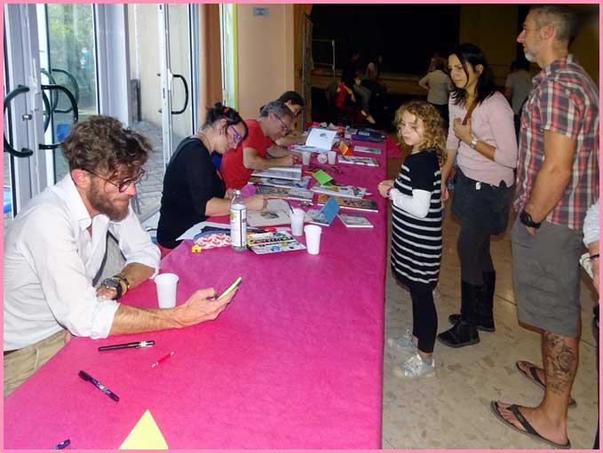 Durant la semaine, quatre auteurs-illustrateurs sont d’abord intervenus dans les classes de l’école Jean-Moulin avant de participer à cette fête intergénérationnelle du livre. Huit stands-ateliers ralliaient les familles autour de l’élaboration d’un ouvrage via le texte, l’illustration, la reliure, l’édition. La bibliothèque municipale Paul Colin et la librairie mobile L’Orange Bleue restent fidèles à l’événement.