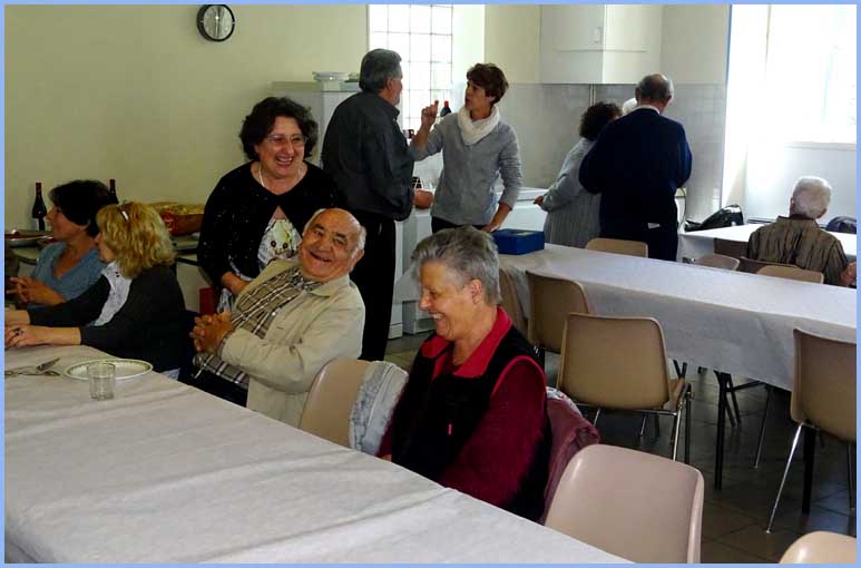 Au fil des tablées... Le maire (à droite) fait partie des convives.