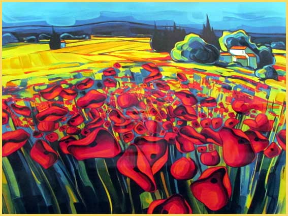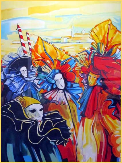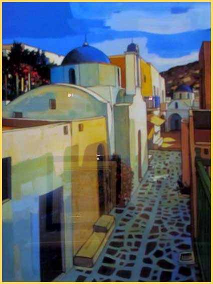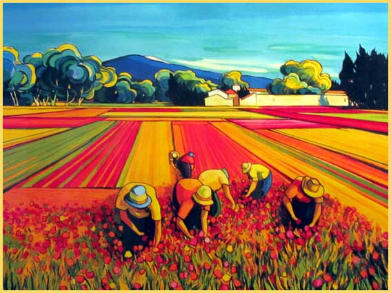 C’est une première pour Bollène qui accueille enfin Zanella, peintre et coloriste établi à Vaison-la-Romaine, et dont les gammes flamboyantes n’en finissent plus de séduire les amateurs du genre, en France et dans le monde. Subjugués, les fans tombent en pâmoison. Car la formule fonctionne à fond et se décline à l’infini : accord majeur bleu-jaune-rouge auréolé de quelques variantes, compositions habiles à l’emporte-pièce, géométries simplifiées et volutes ostentatoires qui, indifféremment, embrasent la Provence, Venise, l’Amérique, la Grèce, les châteaux de la Loire ou des bouquets.