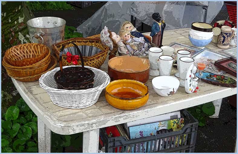 Vide-grenier : sourions sous la pluie !