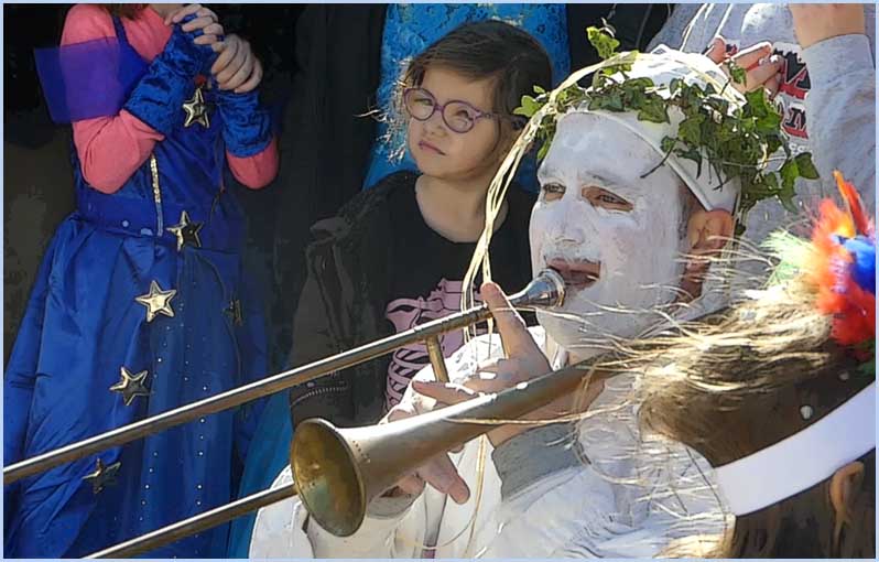 Ces étranges ménestrels sont l'éternelle jeunesse du village.