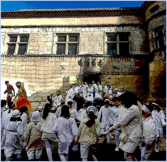 Ils sont l’armature des réjouissances païennes et, de bout en bout, escortent le charivari : irruption en fanfare, défilé en ville, musiques et chants traditionnels, jugement de l’immonde Carmentran, confectionné par les jeunes gens.