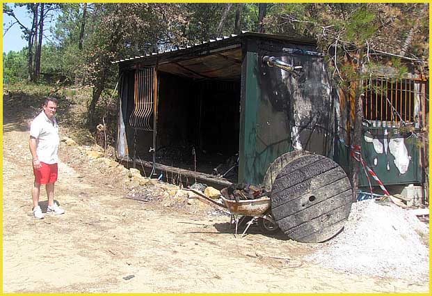Déjà incendié par une main criminelle l’été dernier, puis aussitôt reconstruit, ce cabanon vient de nouveau d’être la proie des flammes dans des conditions identiques, comme l’explique Henri Gélibert, président de la société de chasse de Derboux : « Le 14 septembre 2010, une pluie récente et l’absence de vent limitaient les risques d’étendue du feu qui s’est déclaré vers 22 heures, afin que les pompiers de Mondragon et Bollène arrivent à temps.