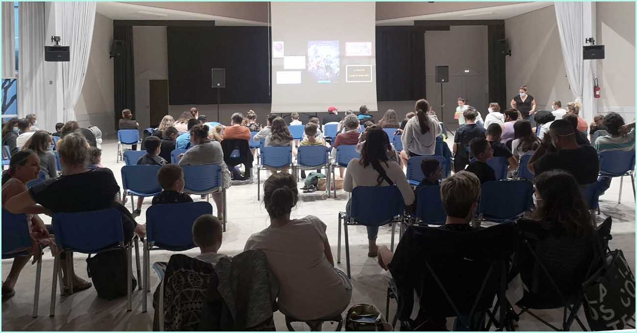 En raison de la météo incertaine et des températures très fraîches annoncées, dès le début de soirée, le projectionniste a souhaité installer son matériel en intérieur. En effet, des averses étaient encore annoncées entre 18h et 21h, L'intercommunalité ne souhaitait donc pas prendre le risque d’interrompre la séance (comme l’année dernière). La solution de repli (salle des fêtes) a donc été activée. La séance a eu lieu comme prévu à 21h30 en respectant les consignes sanitaires. La projection a réuni 110 personnes au plus grand plaisir des familles.