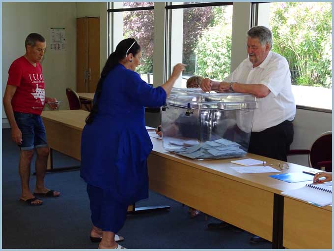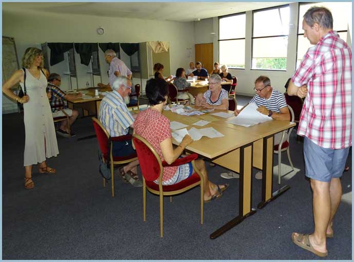 Vers 18h30 bureau n° 2 dépouillement (salle des fêtes)