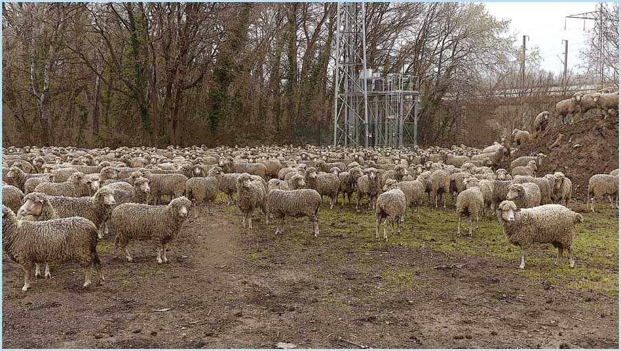 ![]() Ce jour-là, l'entretien naturel du site est aussi assuré par le pâturage de quelque 600 moutons de la Drôme |