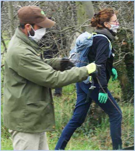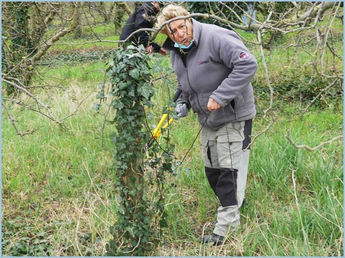 ![]() Ça défriche, cisaille, ratisse en tous sens... Vers midi, un éventuel pique-nique conclura le chantier bucolique. |