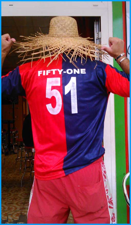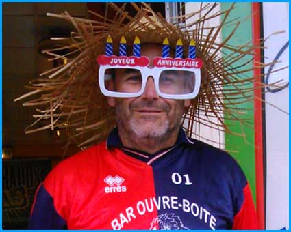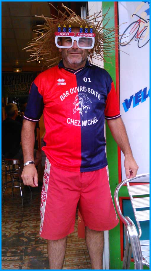 Sur la photo, il arrose ses 51 ans avec du pastis.