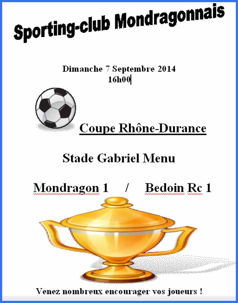 Quand une équipe  de promotion d’honneur se prend les pieds dans le plat à Mondragon ! (3 -1) Certains diront qu’Apt est venu la fleur au fusil, moi je dirai plutôt que Mondragon a fait un match pratiquement parfait ! Les trois plus anciens de l’équipe (tout est relatif !) ont finalisé les actions des plus jeunes. Ainsi, le mélange de l’expérience des anciens et la rapidité, la hargne des jeunes ont permis à Mondragon de surclasser Apt, pourtant donné favori !