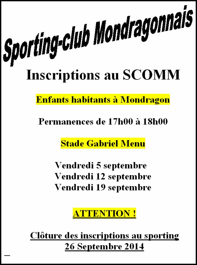 Rappel du secrétaire Olivier (Marchand) : Inscriptions au SCOMM