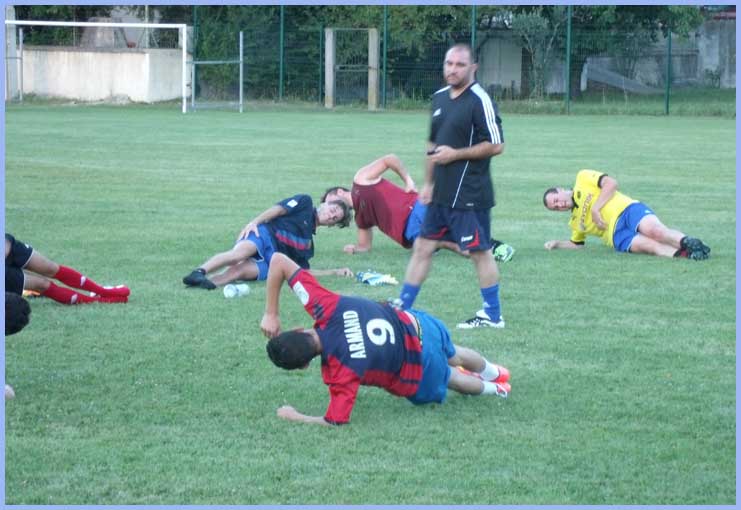 Premier match de préparation contre une équipe de la Drôme « Roussas ». Premier match pour Clément en tant qu’entraîneur. Match qui lui a permis de juger ses joueurs et, avec l’aide de David, de commencer à imaginer une équipe pour le premier match de coupe. Devant le nombre incroyable de joueurs présents, les entraîneurs des deux équipes ont décidé de faire un match en 3 fois 30mn.