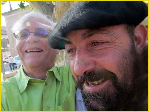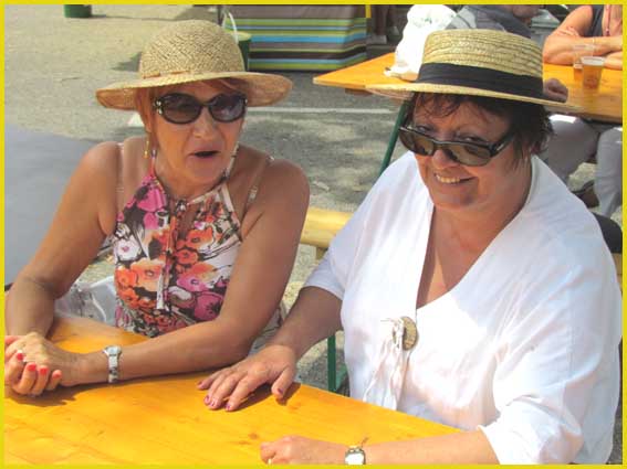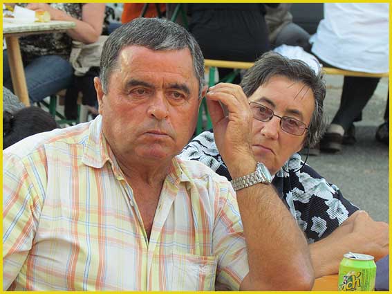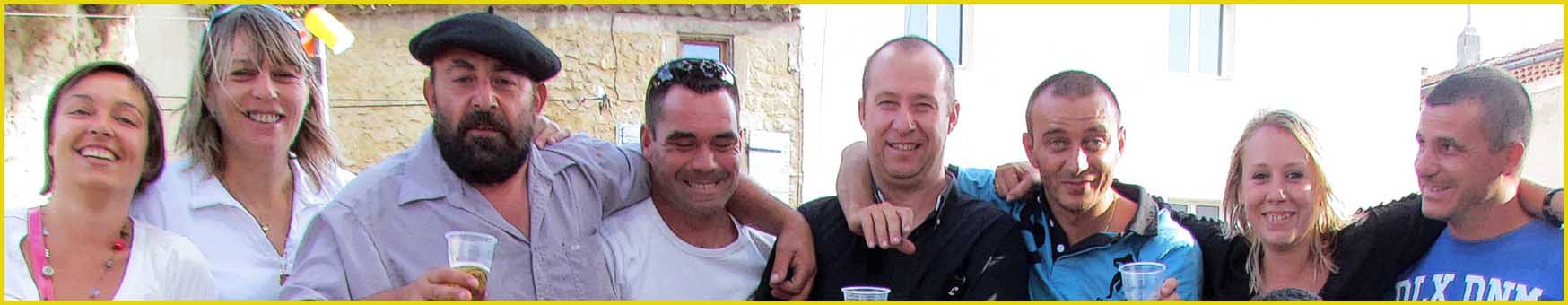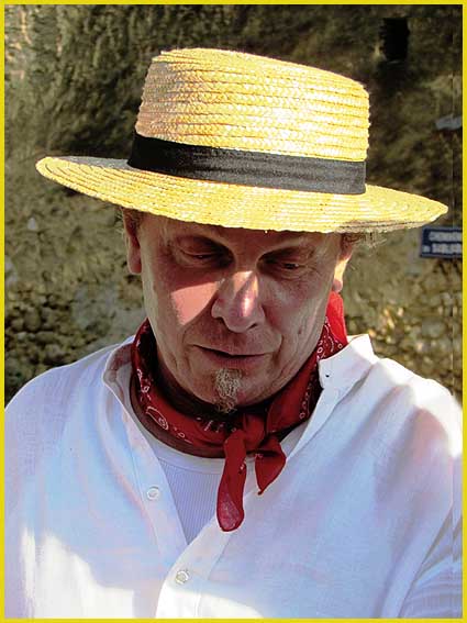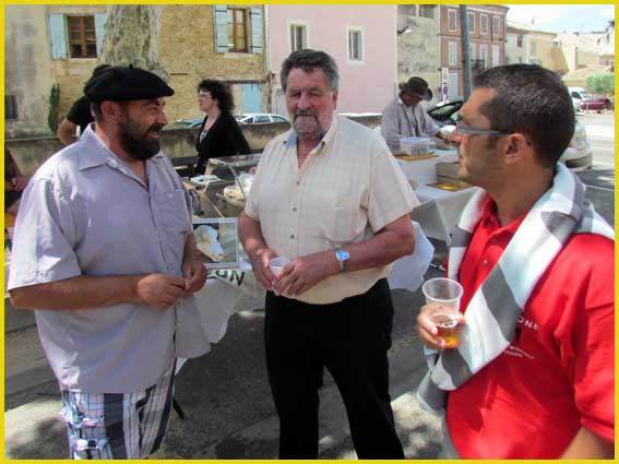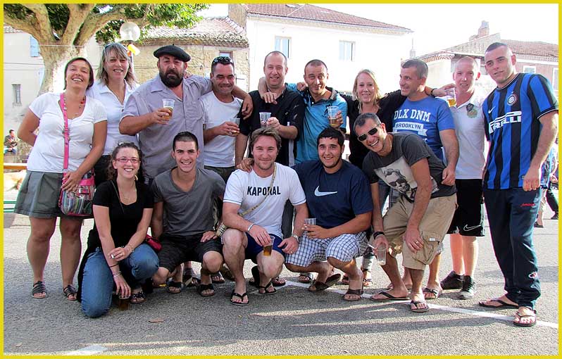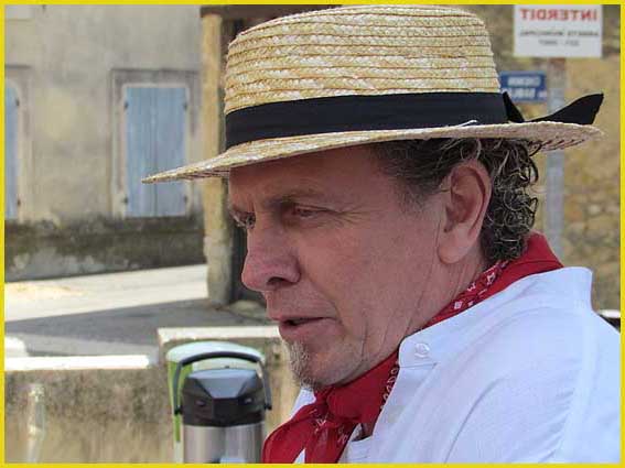 Mon pote Charly a préféré le béret basque.               Le maire (au centre) est de la fête.                    Le canotier de Gérard est très représentatif.