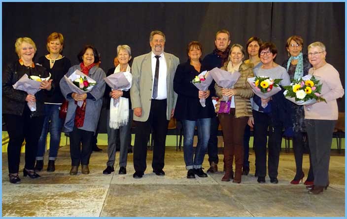 La cérémonie des vœux (voir édition précédente) était suivie d’une remise de récompenses aux méritants de 2014. Sont ainsi mis à l’honneur les membres de l’équipe bénévole qui viennent en aide aux collégiens à l’espace culturel : Marie-Andrée Altier, Gabrielle Astier, Simone Corfa, Françoise Cuvelier, Elisabeth Cuvier, Arlette Depeyre, Stella Gallisa, Simone Grenier, Marie-Thérèse Raymond, Roselyne Reppelin, Béatrice Riggio, Martine Rivas, Virginie Vicente, Monique Ville, Claude Altier, Gérard Fayolle ; ainsi que Michel Gay (bibliothèque).