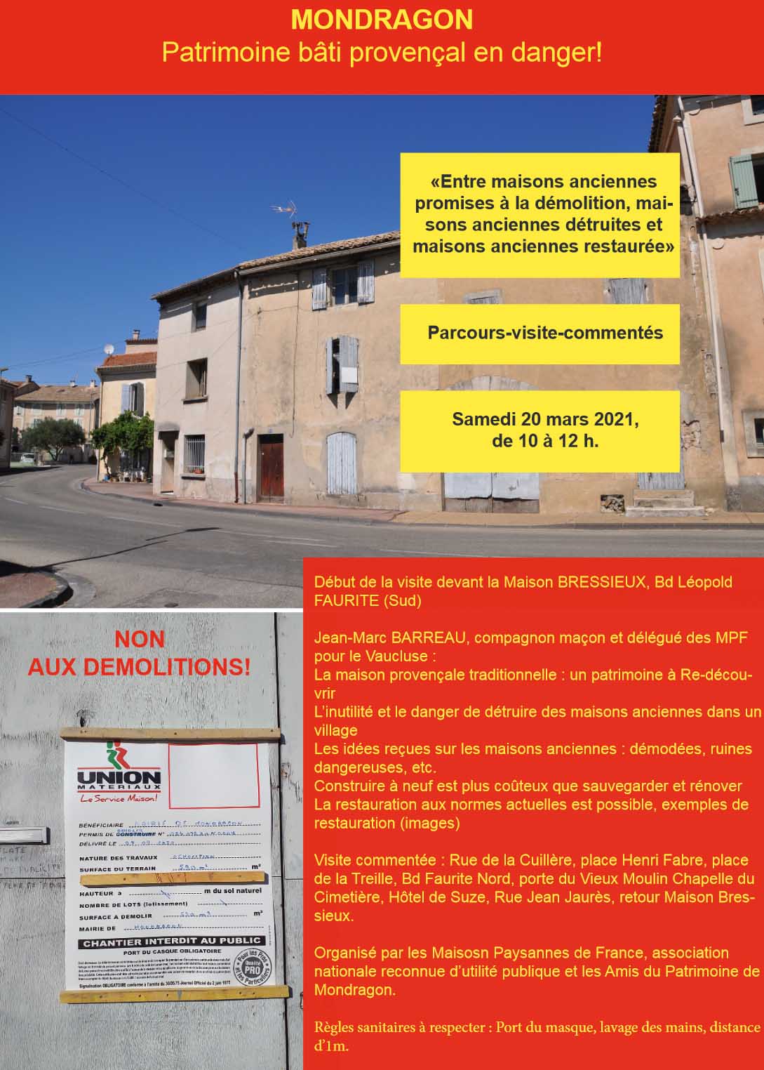 Situées boulevard Léopold Fauritte, des maisons sont menacées de destruction. Reconnue d’utilité publique, l’association Maisons Paysannes de France proteste contre un permis de démolir injustifié et non conforme au code de l’urbanisme. Déjà en mai 2018, un courrier adressé au maire Christian Peyron plaidait la cause de la restauration de l’hôtel Casino de Gare. Mais ce bel édifice a été détruit. L’inventaire des démolitions sur la commune montre qu’il est temps de stopper le massacre. Le maire est invité à ouvrir le dialogue avec les pouvoirs publics et les associations concernées qui œuvrent pour valoriser le patrimoine, renforcer l’attractivité des villages et promouvoir un habitat harmonieux et sain. La restauration est une alternative plus satisfaisante que la destruction. Ce sera démontré, exemple à l’appui. Rendez-vous est donné à la population samedi 20 mars de 10h à 12h boulevard Léopold Fauritte (sud) devant l’aire de jeux. J. P.