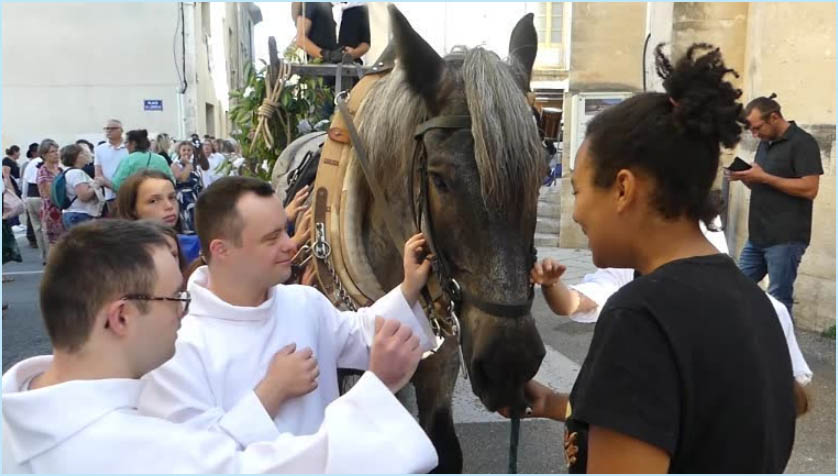 ![]() Les aînés sont transportés en calèche. |